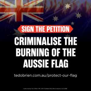 - Petition: Criminalise the Burning of the Australian FlagThe increasing scenes of protesters burning the Australian National Flag are deeply disturbing, disrespectful, and entirely out of step with the values we share as Australians. Our flag is more than cloth and colour. It is the symbol worn by members of the Australian Defence Force on their shoulders and draped over the coffins of … Continued