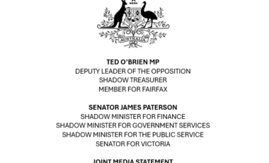 TED O’BRIEN MP DEPUTY LEADER OF THE OPPOSITION SHADOW TREASURER MEMBER FOR FAIRFAX SENATOR JAMES PATERSON SHADOW MINISTER FOR FINANCE SHADOW MINISTER FOR GOVERNMENT SERVICES SHADOW MINISTER FOR THE PUBLIC SERVICE SENATOR FOR VICTORIA JOINT…
